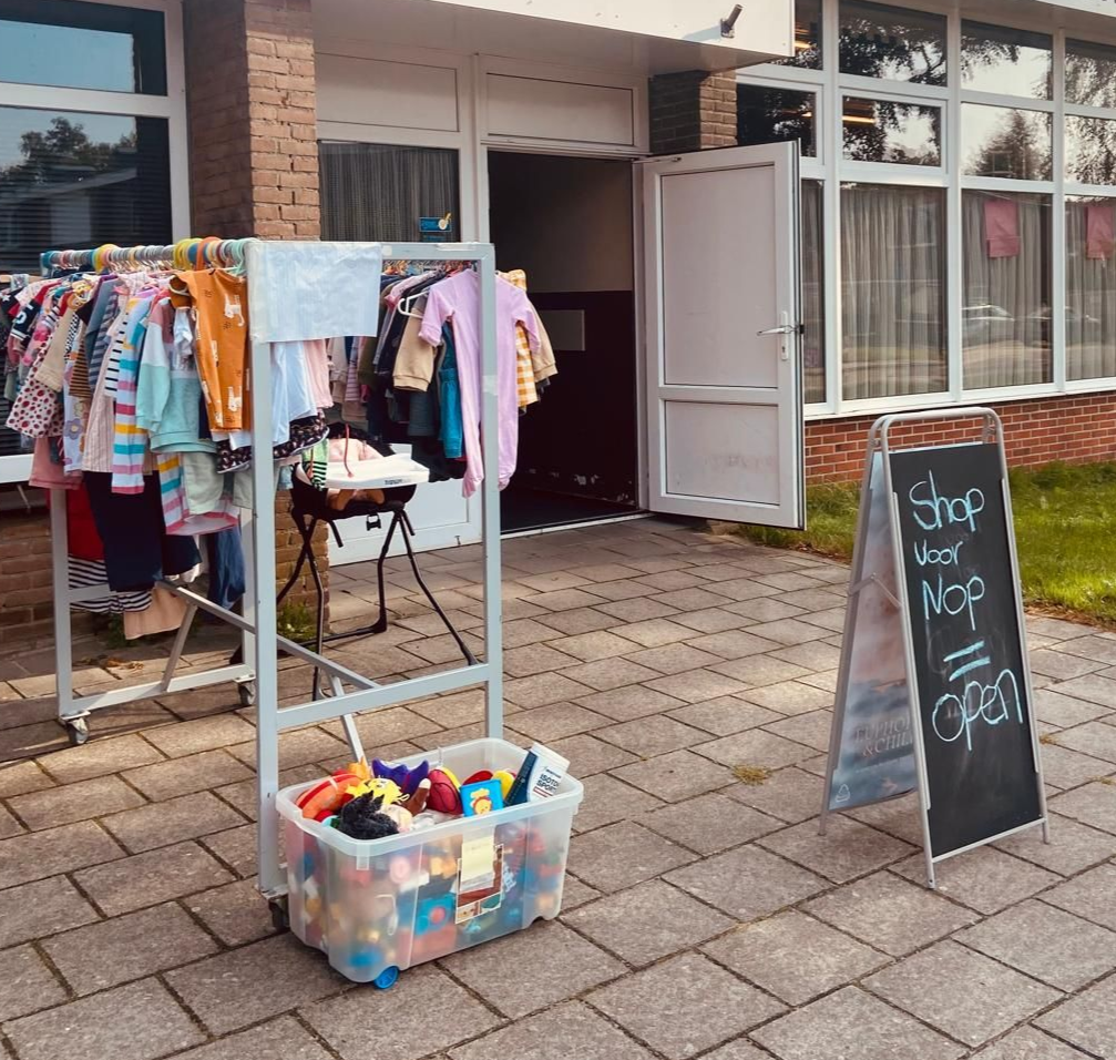 Shop voor Nop is geen winkel, maar een ontmoetingsplek voor de buurt. Iedereen mag binnenlopen– om spullen te brengen, iets mee te nemen of gewoon voor een praatje ☕